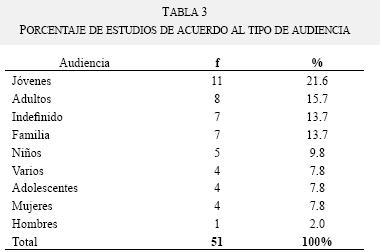 3. ¿Qué tipo de audiencias y temas son los más estudiados en estos trabajos?