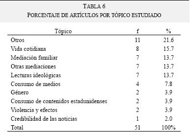 El análisis comprende 51 trabajos publicados desde 1992 en revistas latinoamericanas de comunicación y ciencias afines. La revisión se realizó buscando los estudios inscritos en esta temática, que estuvieran disponibles en las revistas especializadas más importantes de América Latina en su versión electrónica, y algunas en papel propiedad del CINCO.