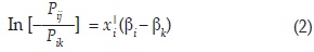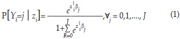 donde Yi es el evento de estudio y zi el vector de factores individuales, del hogar y de la localidad mencionados anteriormente. En el caso multinomial con J=4, j toma los valores 0, 1, 2, 3 o 4 para distinguir el uso por tipo de institución proveedora de servicios de salud (ninguna=0, SS=1, SSa=2, privado=3, y otro proveedor de salud=4), tomando como grupo de referencia a la categoría de los hogares que no usaron ningún tipo de servicios. La estimación de este modelo nos permitió analizar simultáneamente la decisión de usar o no servicios ambulatorios y, entre los usuarios, el proveedor seleccionado, y mostrar el peso relativo de los factores asociados con la elección y acceso a diferentes tipos de proveedores. Los coeficientes de este modelo miden entonces la probabilidad de uso de servicios de salud vs. no haber usado ningún tipo de servicio, para cada uno de los proveedores elegidos por los individuos incluidos en el análisis.