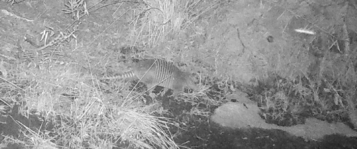Figure 2 Nine-banded armadillo (Dasypus novemcinctus) recorded at the xeroriparian habitat at the arroyo at Huerta Grande, Jal. Photo by an automatic trail camera on 27 September 2023.