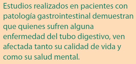 Estudios realizados en pacientes con patologia gastrointestinal demuestran que quienes sufren alguna enfermedad del tubo digestivo, ven afectada tanto su calidad de vida y como su salud mental.