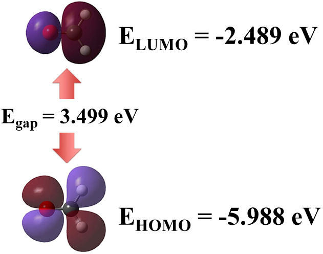 FIGURE 2 Frontier molecular orbitals HOMO and LUMO for formaldehyde molecule. Also, HOMO-LUMO gap is annotated.