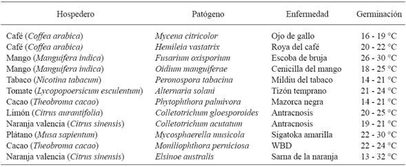 Tropical pathosystems, i.e. those made up of a pathogenic agent and a tropical species as a host, could provide clues of the effect of climate change through associated biological indicators. A factor that favors the identification of indicators is the association of the organism with perennial hosts, since it helps carry out historical studies of plant health processes. Epidemiological studies have been carried out in hosts such as coffee (Coffea arabica), avocado (Persea americana), banana (Musa spp), cocoa (Theobroma cacao), coconut (Cocos nucifera), and citrus fruits (Citrus spp.) in different periods of time and spaces that show changes in the intensity of the epidemics.