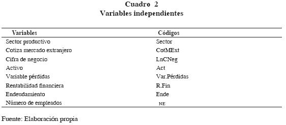 Los resultados obtenidos de las variables independientes muestran que las variables correspondientes al tamaño de la empresa (cifra de negocio, activo y número de empleados) son estadísticamente significativas, al igual que la variable de sector productivo. Las demás variables no señalan esta situación en las empresas que cotizan en mercados extranjeros y en las empresas que muestran pérdidas, así como las razones correspondientes al financiamiento y endeudamiento, estas dos últimas variables son significativas al 10%.