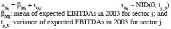 The variance decomposition explicated by Table 1 shows that the main part of the variance was due to the variability of the EBITDA margin among companies from the same sector. One cannot ignore, however, that significant variability exists in the EBITDA margin between companies from different sectors and over time.