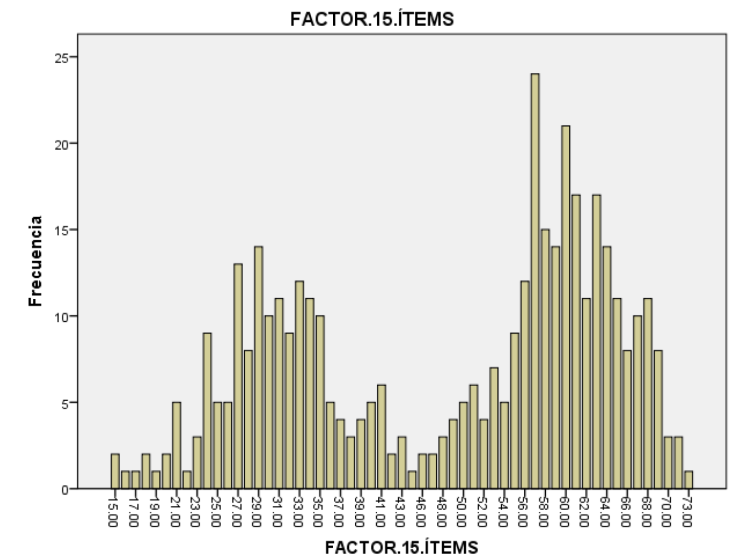 Tabla 3 Puntaje mínimo y máximo, desviación estándar y media del factor de 15 ítems