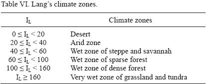 The ranges in Table VI were used to classify zones with significant differences in precipitation and temperature. The Lang Index for the Guayalejo–Tamesí river basin has a value of 33.06, which lies approximately at the midpoint of the range corresponding to the Arid zone (20 ≤ IL< 40).