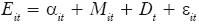 Donde Eit está conformado por el nivel de ocupación formal registrado por el Instituto Mexicano del Seguro Social (IMSS) para todos los estados de México, i, en el periodo, t, 20032007, M es la proporción del producto interno bruto (PIB) manufacturero en el PIB total por estados para el periodo referido obtenido del Banco de Información Económica del INEGI , D es una variable dicotómica que toma un valor de 1 para los estados de la frontera y 0 para el resto de los estados, y e es el término de error.