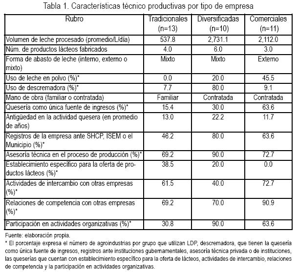 El segundo objetivo fue establecer una tipología de las empresas queseras, para lo cual se clasificaron y se determinaron características técnico productivas por tipo de quesería.