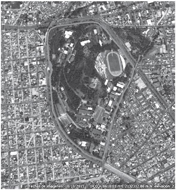 Figura 2 Ciudad Universitaria. Universidad Autónoma del Estado de México, en el contexto del Municipio de Toluca, Estado de México.