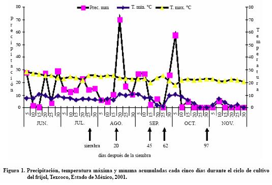 Condiciones climáticas. Los registros de precipitación, temperatura máxima y mínima diarias durante el ciclo de cultivo se obtuvieron de una estación meteorológica, localizada a 500 m del sitio experimental (Figura 1).