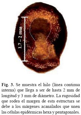 5. Forma del hilo (H). Se observó que a mayor proximidad al margen micropilar se tornan rugosos (fig. 3).