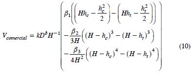 donde, hc es la altura sobre el tocón a la que se da el Vcomercial y ht es la altura del tocón. Así la forma desarrollada de esta expresión es: