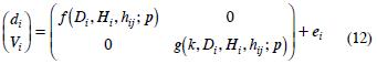 donde, di es el vector de observaciones de ahusamiento en el iésimo árbol; Vi es el vector de observaciones de volumen comercial en el iésimo árbol y: