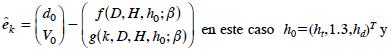 Para facilitar la discusión sobre el ajuste del sistema compatible propuesto se abrevia la Ecuación (6) como dij=f(Di, Hi, hij,; p) y la Ecuación 10 como Vij,=g(k, Di, Hi, hij; p), donde f(.) define la estructura del modelo de ahusamiento y g(.) al modelo de volumen comercial, p es el vector de parámetros p = (β1, β2, β3, δ) estimables del sistema y dij es el diámetro del iésimo árbol observado a la hij altura sobre el fuste. De igual manera para el volumen acumulado Vij .