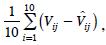 donde Vij es el volumen acumulado observado del iésimo árbol a la jésima altura y