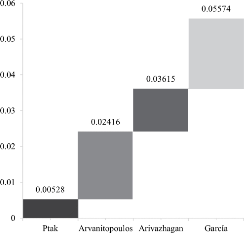 HM(d)={Ptak(d),0TLSICI(d)0.00528,Arvanitopoulos(d),0.00528TLSICI(d)<0.02416,Arivazhagan(d),0.02416TLSICI(d)<0.03615,Garcia(d),0.03615TLSICI(d). (3)