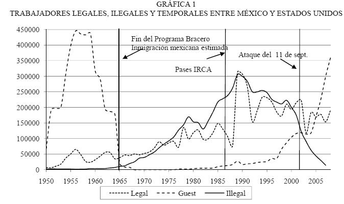 Hace ya una década que Durand et al. (1999) llamaron la atención sobre la llegada de una "nueva era" para la migración MéxicoEstados Unidos, hecho que fue provocado por la ley de Reforma Migratoria IRCA de 1986. Aunque los autores no le dieron un nombre específico a este periodo, posteriormente Massey et al. (2002 y 2009) la calificaron como la "era de la contradicción", dado que la política de aquellos años se movía en dos direcciones opuestas: por una parte se liberalizaban los controles para el tránsito de bienes, mercancías, servicios, capital, información y cierto tipo de personas (profesionales, técnicos de alto nivel, inversionistas, empleados de compañías transnacionales) y, por otra, se imponían nuevas barreras e impedimentos para el tránsito de trabajadores entre ambos países.