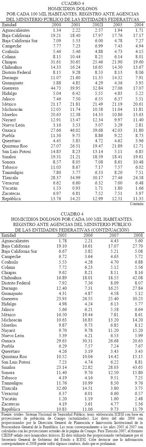 El homicidio en México, 20002008