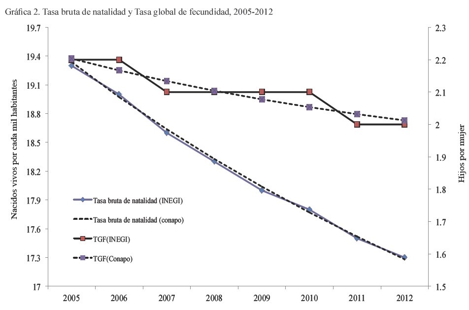 Estos excedentes de población refieren de manera directa a retornos de migrantes, en donde destacan los grupos etarios en plenitud laboral y los menores de 15 años. Por lo que compete al crecimiento de los nacimientos, resulta inesperado porque en términos absolutos éstos se venían reduciendo, igual que la tasa de natalidad. De hecho, la tasa bruta de natalidad o nacimientos por cada 1000 habitantes vino cayendo en el país durante los últimos años: 26.5 en 2000, 20.6 en 2005 y 19.4 en 2007,5 de ahí la necesidad de dar cuenta de los resultados inversos.