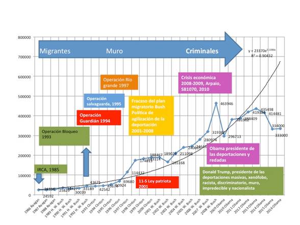 Figura 2: Evolución de las deportaciones de inmigrantes desde Estados Unidos 1976-2016