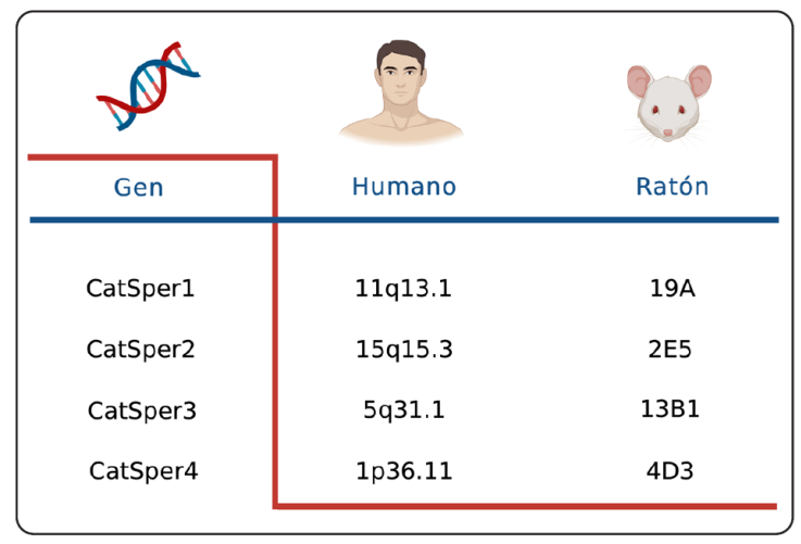 Figura 2 Localización genética de las subunidades CatSper α (1-4) en humanos y en ratones.