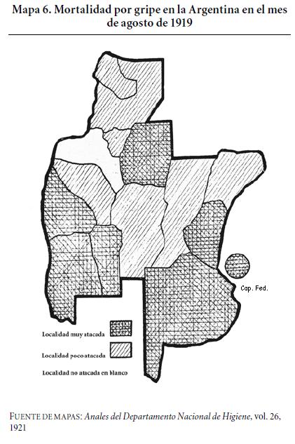 9 Los Anales del Departamento Nacional de Higiene advirtieron de esta situación, aunque en el sentido de que en estas provincias no entraba la gripe por estar sometida a otras enfermedades (Anales del Departamento Nacional de Higiene, vol. 26, año 21, pp. 2728). [ Links ]