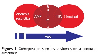 Algunas observaciones clínicas han llevado a considerar que existen una serie de sobreposiciones entre la anorexia nerviosa y la obesidad. Además, en algunos casos, el peso y las conductas alimentarias puedan cambiar en sus expresiones en el mismo individuo (Fig. 1).