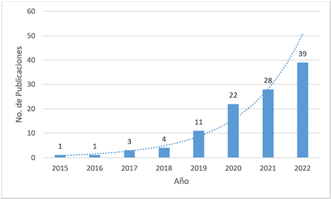 Utilizando biblioshiny para la revisión bibliométrica se hizo un análisis sobre los artículos publicados por año en el estudio de las CD y la EC del periodo 2015 al 2022.