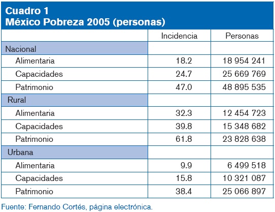 De acuerdo con estas cifras, en México en el año 2005, 19 millones de personas vivían en la pobreza extrema y 49 millones en condiciones de pobreza. Cinco años después la situación había empeorado.