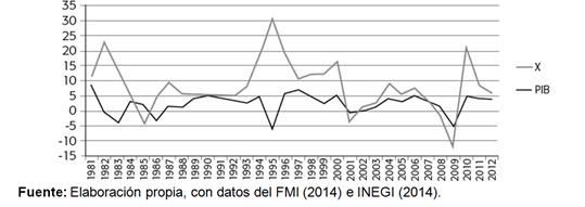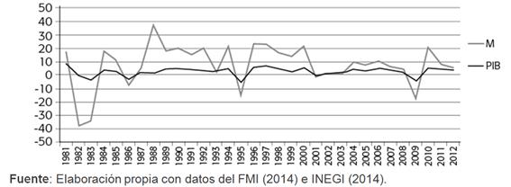 Fuente: Elaboración propia con datos del FMI (2014) e INEGI (2014).