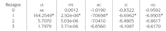 * Indica el rezago seleccionado por el criterio.