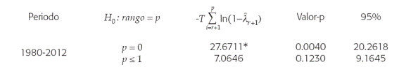 Cuadro 4 Resultados de la prueba de la traza de Johansen