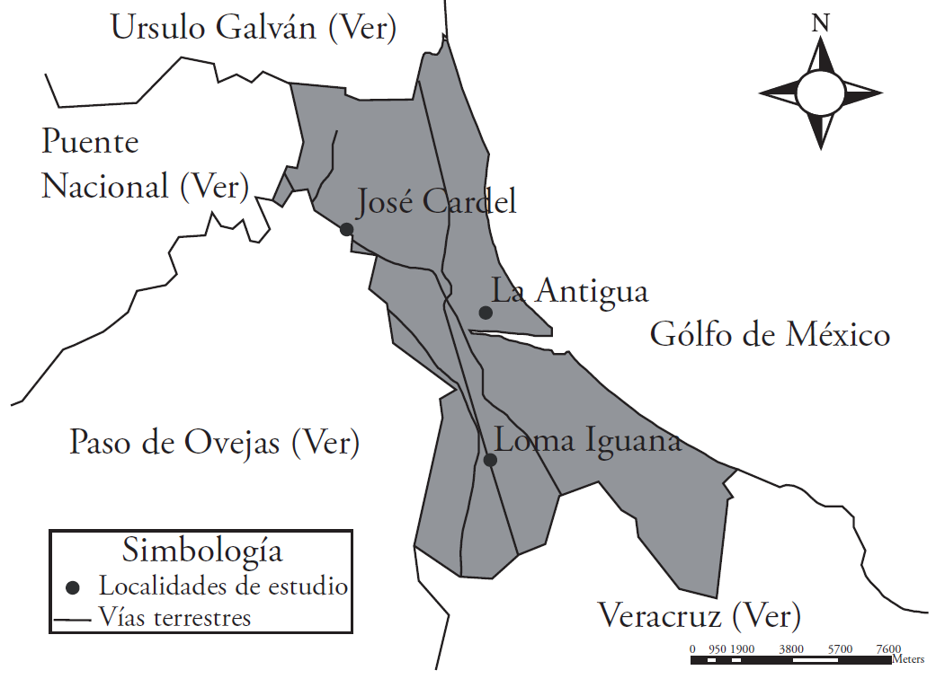 Figura 1 Municipio de La Antigua y tres localidades estudiadas.