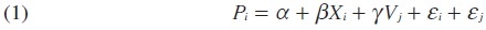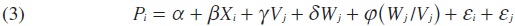 donde Wj / Vj es la razón entre las características de los vecindarios adyacentes al vecindario j y las características de dicho vecindario j donde se sitúa la vivienda i.