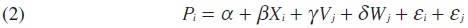 Desde un punto de vista más formal, la ecuación (1) se modifica para incluir los efectos de las características de vecindarios adyacentes sobre la probabilidad de que la vivienda i sufra un robo (Pi) de la siguiente manera:
