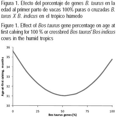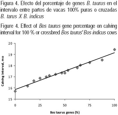 Los resultados de EPP obtenidos en el presente estudio son similares a los observados en otros (8,9,13) donde encontraron reducciones similares en EPP conforme incrementó el porcentaje de BT en los animales cruzados con razas locales; en los mismos estudios se observa que el genotipo ½BT ½BI presentó las mejores EPP.