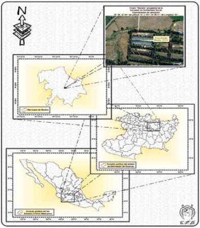 El vivero "Morelia" es propiedad de la Sociedad de Solidaridad Social (SSS) y se ubica en la Tenencia Morelos, a 2 km al sur de la ciudad de Morelia, Mich., en las coordenadas: 19°38'27.94" N, 101°14'55.11" O a una altitud de 1 960 m (Figura 1).