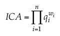 Donde n son las ocho variables; wi, el peso específico que se asigna a cada parámetro (i), que se pondera entre 0 y 1, de tal forma que se cumpla que la sumatoria sea igual a uno; qi, la calidad del parámetro (i), en función de su concentración, y cuya calificación oscila entre 0 y 100; PI representa la operación multiplicativa de las variables Q elevadas a la W.