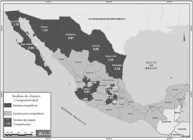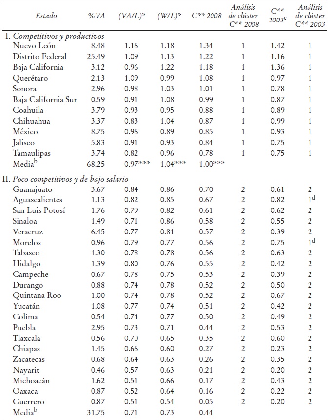 Cuadro 2 Los estados competitivos y poco competitivos: análisis de clústers.a